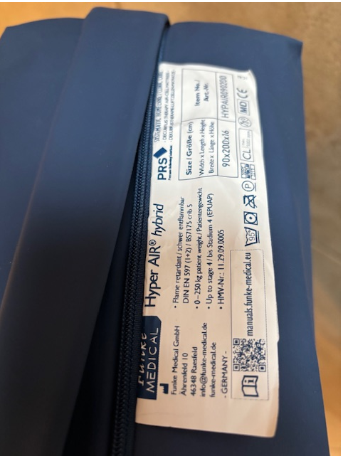1x ist eine Hyper Air hybrid Luftzellen-Antidekubitusmatratze (Grad 4) mit Inkontinenzschutz